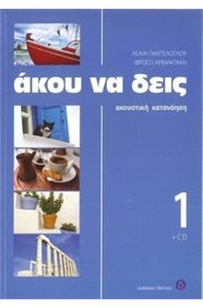 Η σειρά "Άκου να δεις" έχει ως σκοπό την ενίσχυση της ακουστικής κατανόησης του ξενόγλωσσου σπουδαστή που μαθαίνει ελληνικά.Αποτελείται από 3 βιβλία και 3 CD και μπορεί να χρησιμοποιηθεί ως συμπληρωματικό υλικό για οποιοδήποτε εγχειρίδιο διδασκαλίας της ελληνικής ως ξένης γλώσσας, ανάλογα με το επίπεδο του μαθητή.Το "Άκου να δεις 1" απευθύνεται σε μαθητές με στοιχειώδης γνώσεις, και αποτελείται από:-ένα CE με διαλόγους και κείμενα που βασίζονται σε ρεαλιστικές περιστάσεις και,-ένα βιβλίο με ασκήσεις ακουστικής κατανόησης, τα κείμενα και τους διαλόγους που ακούγονται στο CD, και τις λύσεις των ασκήσεων.