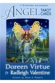 "Tarot has long been revered for giving detailed and accurate forecasts. Doreen Virtue and Radleigh Valentine have created the first deck of tarot cards that is 100 percent gentle, safe and trustworthy! All of the words in this deck, as well as the artwork by Steve A. Roberts, are positive and beautiful, while still retaining the magical effectiveness of traditional tarot. The accompanying guidebook explains the general meaning of each card and walks you through the steps of giving an accurate reading for yourself and others. Rich with symbolism and imagery - including angels, archangels, unicorns, fairies, and mermaids - the Angel Tarot Cards will provide you with inspiring guidance on your life journey!"