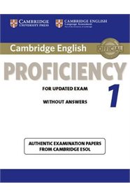 "Cambridge English Proficiency 1 for updated exam (commencing March 2013) contains four complete and authentic examination papers for Cambridge English Proficiency, also known as Cambridge Certificate of Proficiency in English (CPE). This collection of examination papers provides the most authentic exam preparation available. These examination papers allow candidates to familiarise themselves with the content and format of the exam and to practise useful examination techniques. Audio CDs containing the exam Listening material, a Student's Book with answers, and a Self-study Pack containing the Student's Book with answers and Audio CDs are available separately."