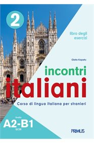 Ένα εγχειρίδιο ασκήσεων που συμπληρώνει το Incontri Italiani 2 – Libro dello Studente και απευθύνεται με απλό και αποτελεσματικό τρόπο σε όλους τους σπουδαστές που επιθυμούν να μάθουν την ιταλική γλώσσα. Το βιβλίο περιέχει: πίνακες γραμματικής θεωρητικές σημειώσεις εξηγήσεις ασκήσεις εμβάθυνσης τοποθέτηση πρόσθετων δραστηριοτήτων σταδιακής δυσκολίας τεστ επαλήθευσης τεστ προόδου για την προετοιμασία για εξετάσεις πιστοποίησης γραπτές και καθοδηγούμενες εκθέσεις το βιβλίο του καθηγητή με χρήσιμες συμβουλές και τις λύσεις των ασκήσεων με εγγραφή στο primuseditions.com Αποτελεί τον δεύτερο από τους τρεις τόμους της ομώνυμης σειράς, η οποία καλύπτει τα επίπεδα Α1-Β2 του ΚΕΠΑ.